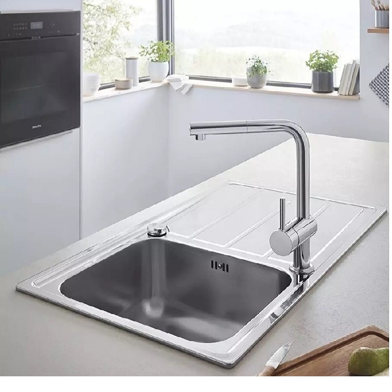 شیر ظرفشویی شلنگدار گروهه مدل مینتا دارای آبکاری کروم می باشد.