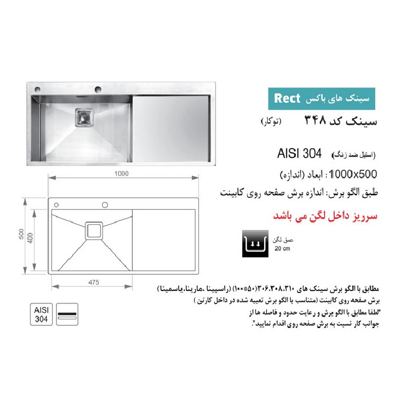 سینک مدل 348 اخوان به دو صورت لگن چپ و لگن راست تولید گردیده است.