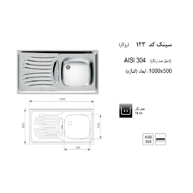 | ضخامت ورق سینک | 0.5 میلی متر |