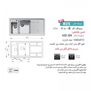 مشخصات سینک توکار اخوان مدل 308S
