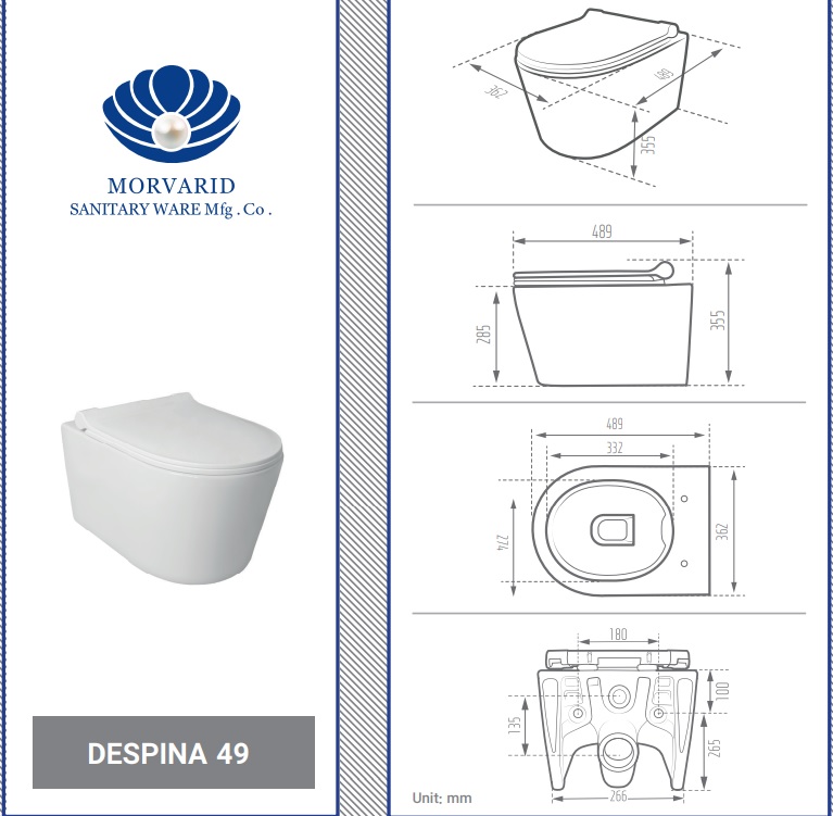 توالت فرنگی دیواری (والهنگ) مروارید مدل دسپینا