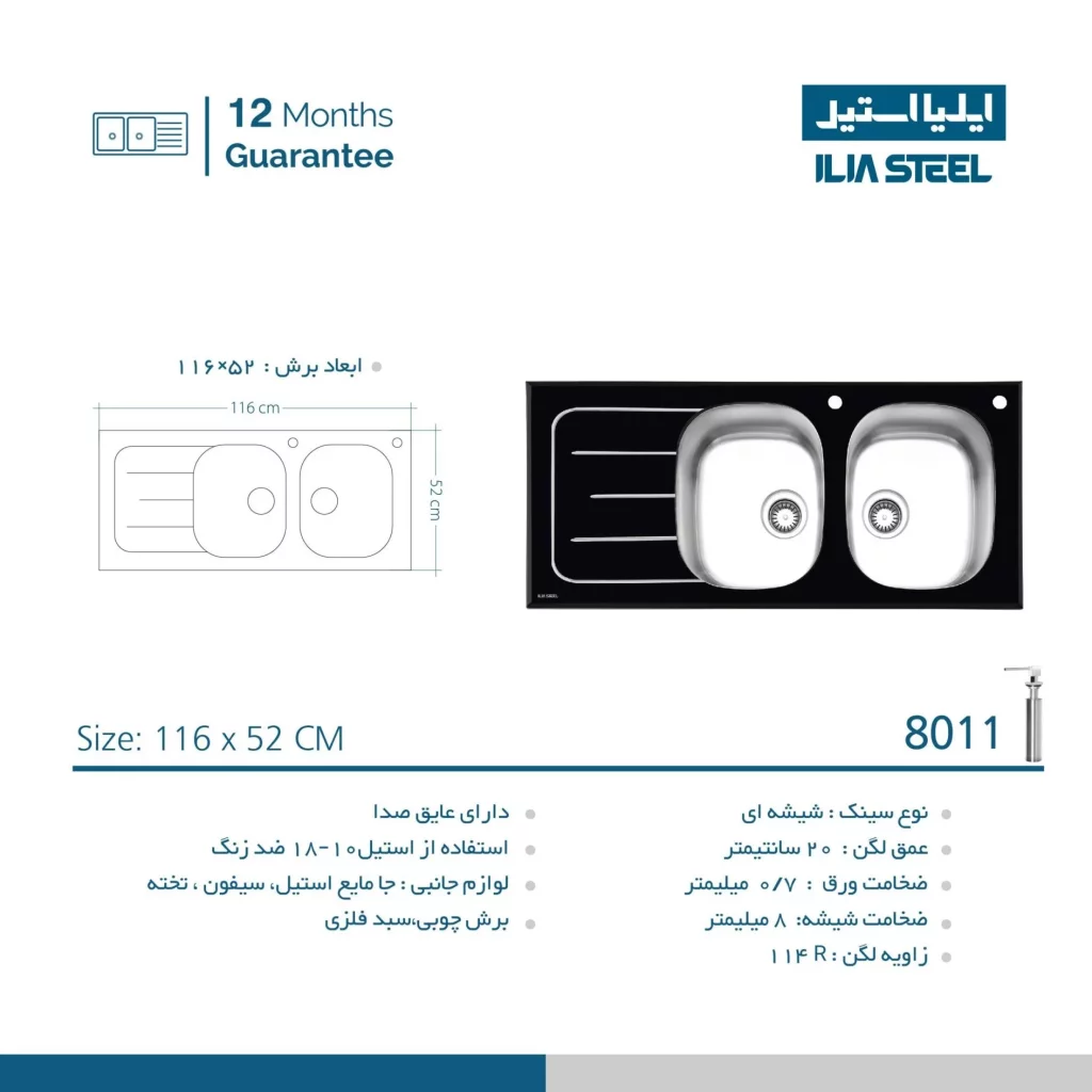 مشخصات سینک شیشه ای ایلیا استیل مدل 8011