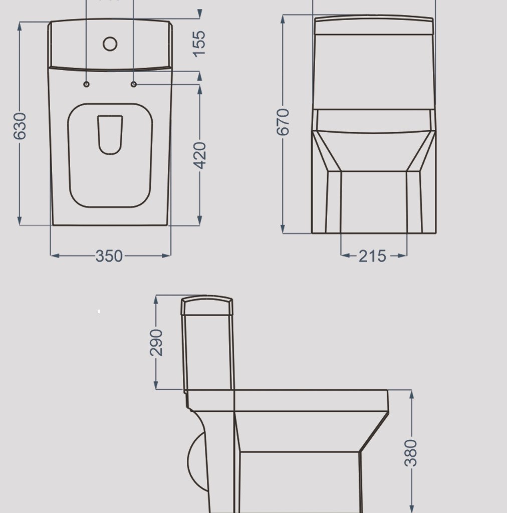 مشخصات ابعاد توالت فرنگی طول 63 عرض 39 ارتفاع 67 سانتی متر است. تحمل وزن تا 400 کیلوگرم