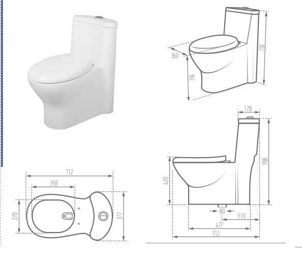 ابعاد توالت فرنگی طول 71.2 عرض 40.3 ارتفاع 70.8سانتی متر