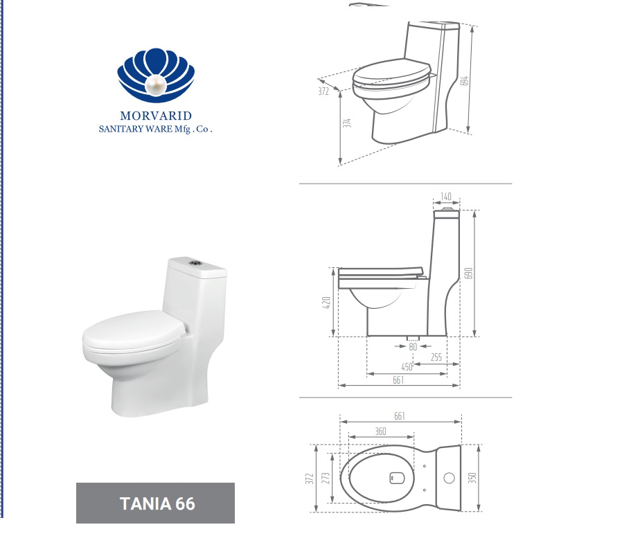 مشخصات ابعاد توالت فرنگی مروارید مدل رومینا طول 66.1 عرض 37.2 ارتفاع 69 سانتی متر
