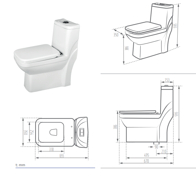 نوع توالت فرنگی | یک تکه |