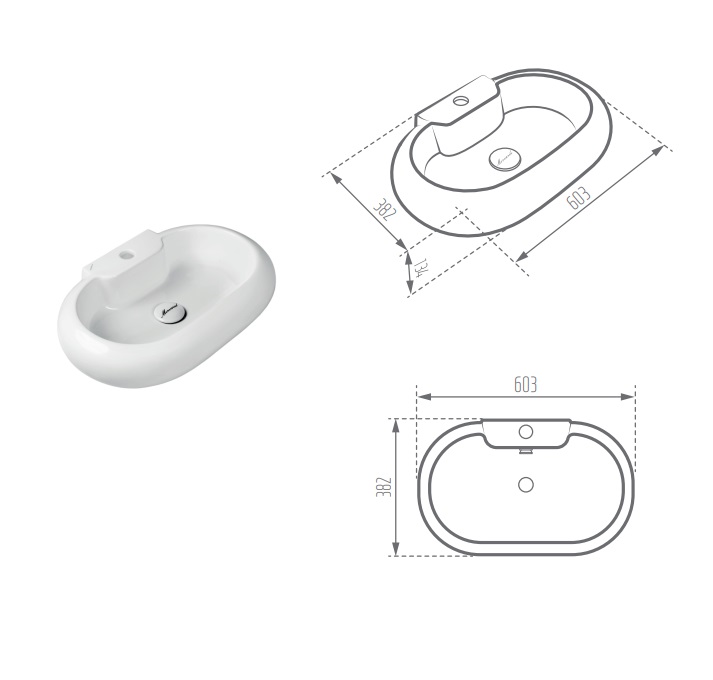 ابعاد روشویی طول 60 عرض 38.2 ارتفاع 13.4 سانتی متر