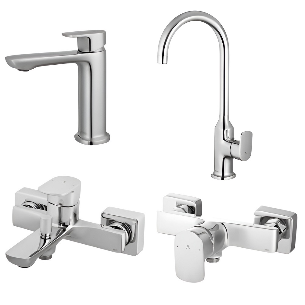 ست کامل شامل شیرآلات: شیر روشویی، شیر توالت، شیر دوش و شیر ظرفشویی