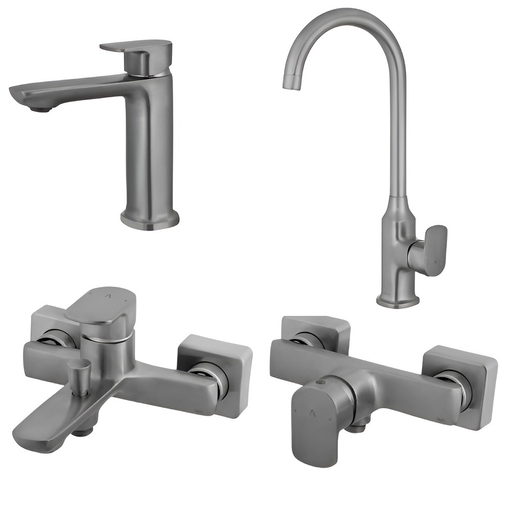 ست کامل شامل شیرآلات: شیر روشویی، شیر توالت، شیر دوش و شیر ظرفشویی