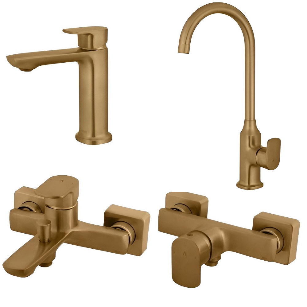 ست 4 تکه شیرآلات البرز روز مدل ویزارد طلایی مات