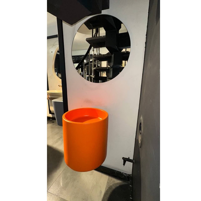 روشویی دیواری نیم پایه کورین دکو مدل مینی تاندو داری رنگبندی طلا، رزگلد، استیل و قطر آیینه 70 سانتی متر می باشد.