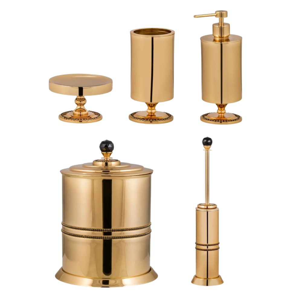 | ست | 1.سطل زباله ۲.توالت شوی(+دسته توالت شوی) 3.جامایع(+سری جامایع) ۴.جامسواک 5.جاصابون |
