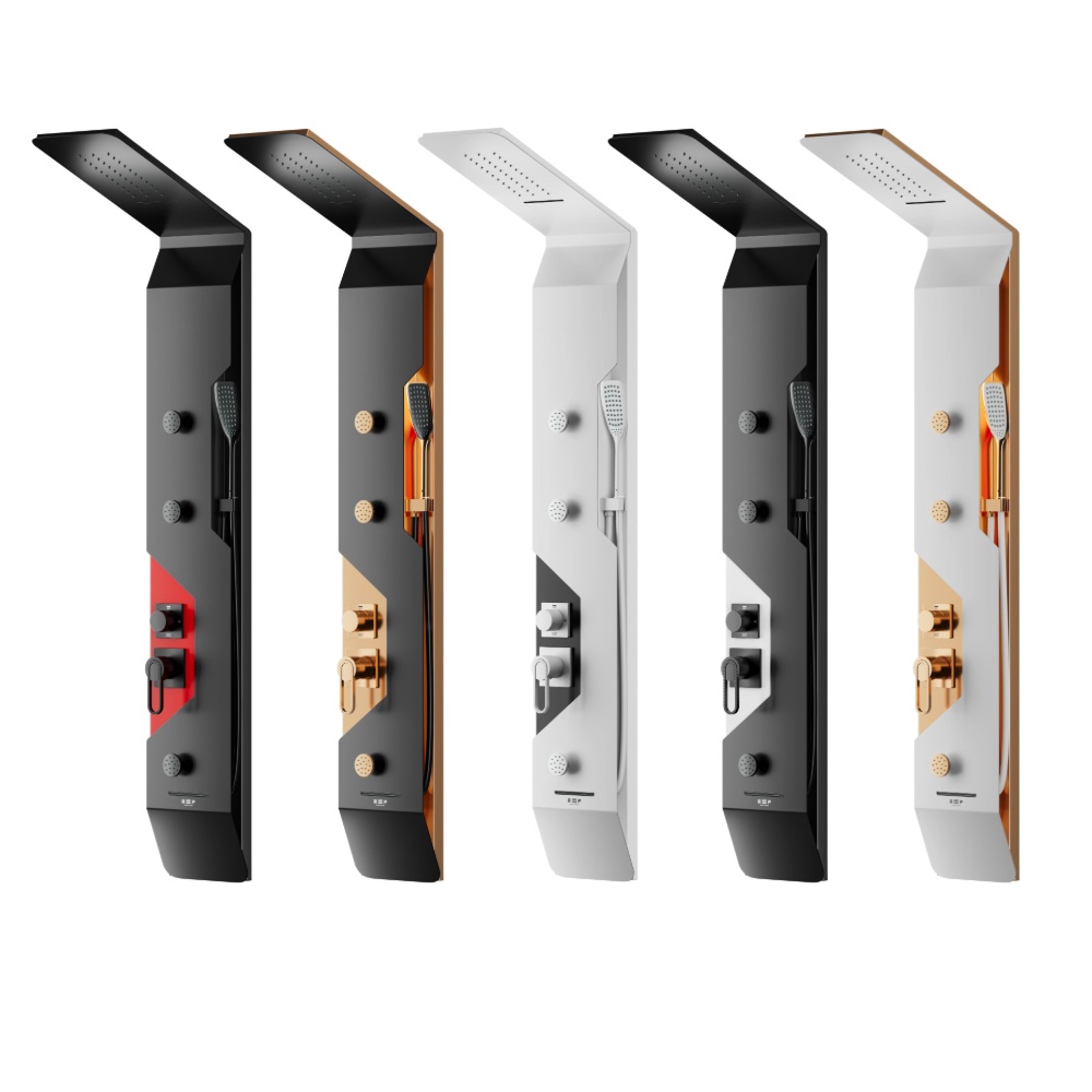 پنل دوش فریز شاور مدل S530 دارای رنگبندی سفید مشکی ، مشکی سفید ، مشکی طوسی ، طوسی مشکی ، مشکی قرمز ، سفید آبی ، سفید طلا ، مشکی طلا، قهوه ای طلایی می باشد.