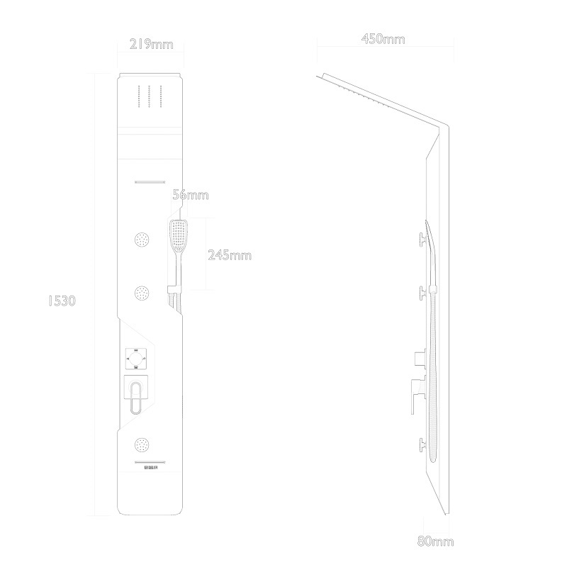 پنل دوش فریز شاور مدل S530 از جنس استیل ضد زنگ 304 مقاوم در برابر زنگ زدگی و خوردگی ، مکانیزم تنه شیر از شمش فشرده فلز برنج می باشد.