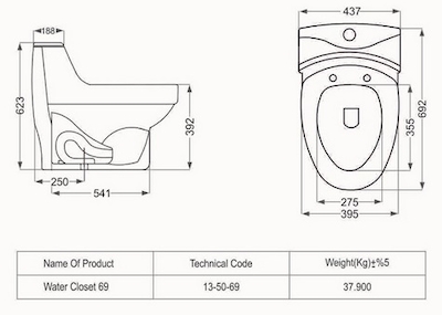 مشخصات ابعاد طول 69 و عرض 43/7 و ارتفاع 62/3 سانتیمتر و با وزن 37/9 کیلوگرم است.