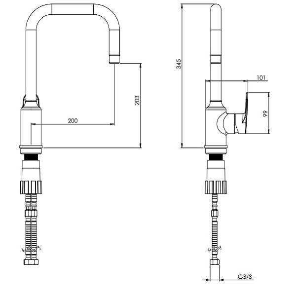 ارتفاع شیر ظرفشویی 34.5 سانتی متر