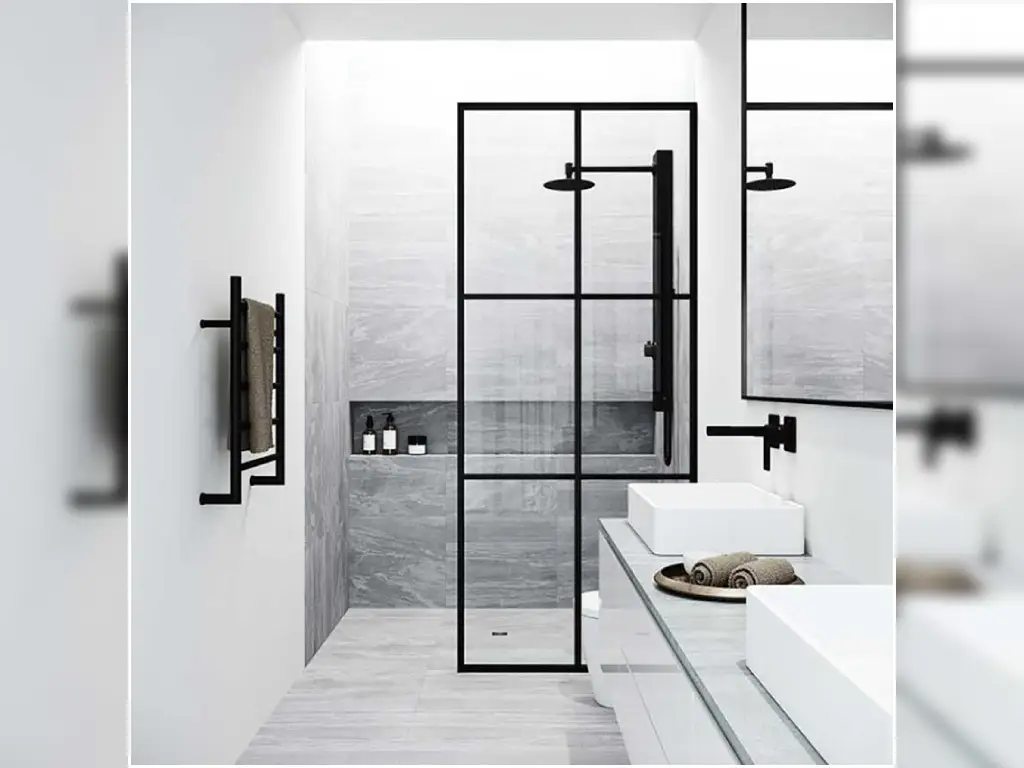 همچنین سرامیک درخشان و براق با بافت سنگی یا مرمری، ترکیب رنگ تیره و روشن باعث میشود تا حمام مجلل و لاکچری بهنظر برسد.