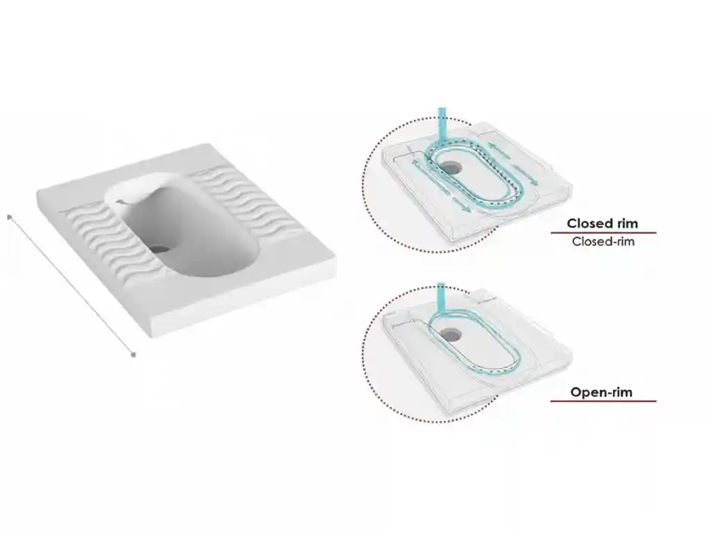 - ریم باز با مصرف زیاد آب، بهداشتی متوسط را فراهم میکند. این مدل در گروه مدلهای اقتصادی قرار دارد و برای فضاهای عمومی و مکانهای پرتردد بهترین انتخاب است.
